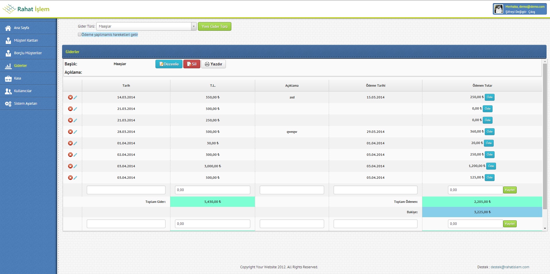Bilgisayarınızda veri tutulmadığı için içiniz rahat olsun. İnternet sayfanızı kapattığınız anda bilgilerinize ulaşmak imkansız. Ancak kullanıcı adı ve şifrenizle basit bir şekilde kolayca bilgilerinize ulaşabilirsiniz. Yetkilendirme sistemi ile çalışan personelinizin yetkilerini kısıtlayabilirsiniz.